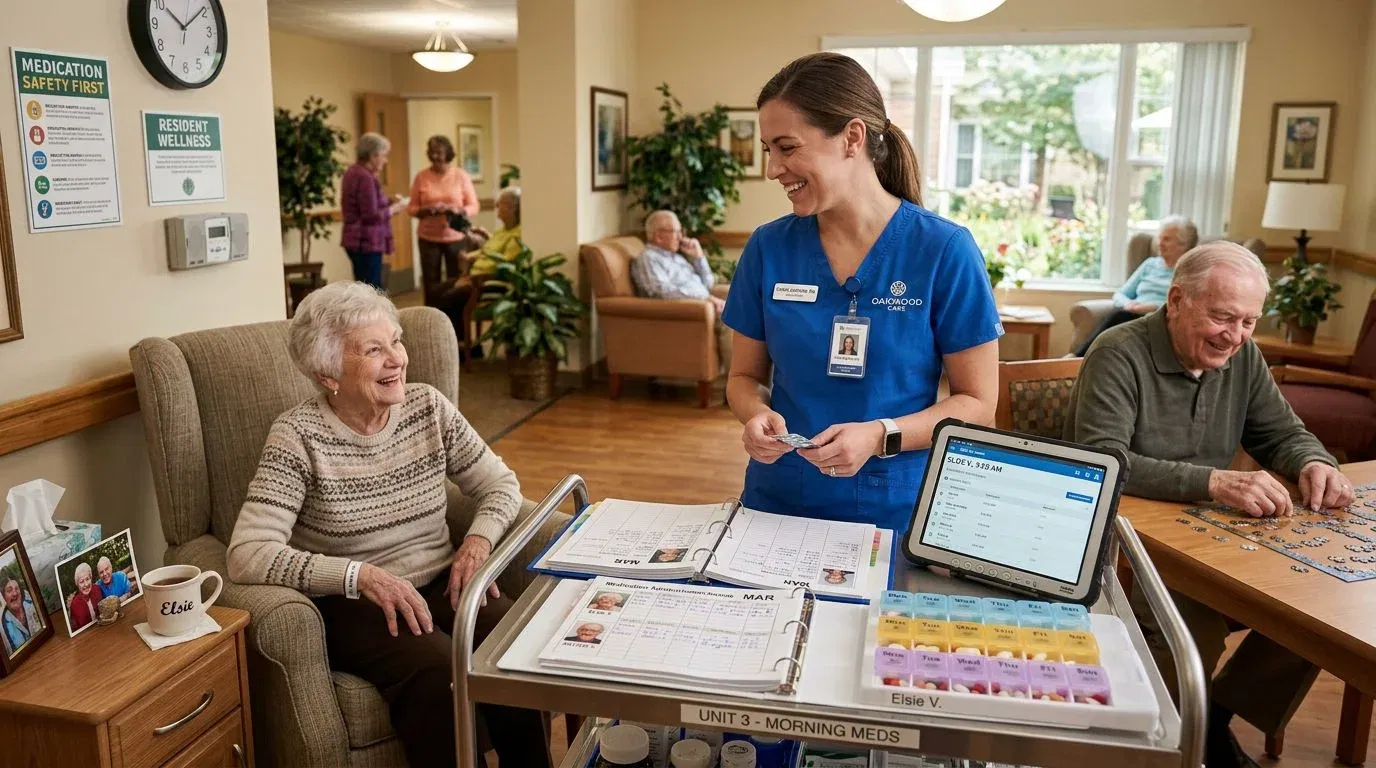 Proper medication administration, reminders and monitoring by licensed professionals.